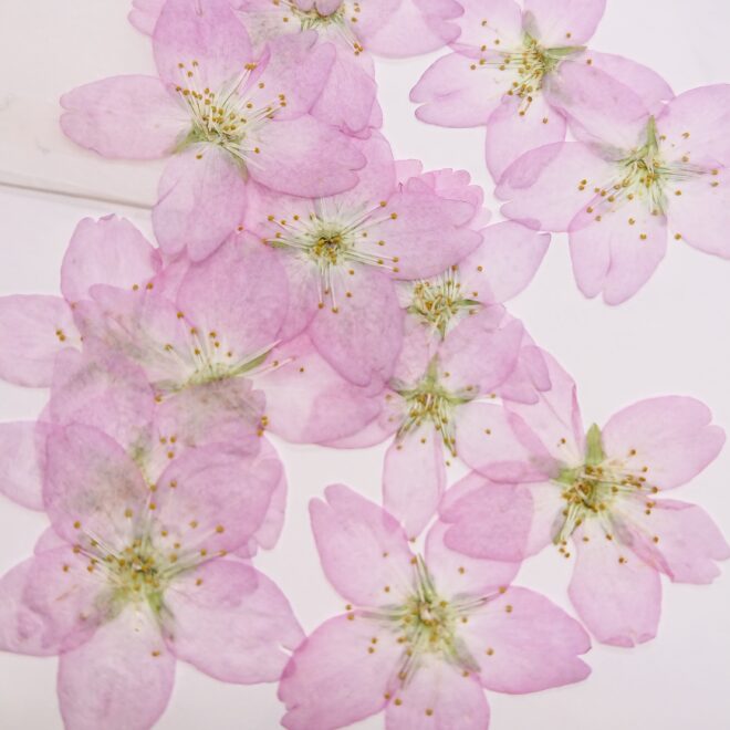 1月、いつも購入している花材屋さんから、早咲きの桜の押し花が販売開始。