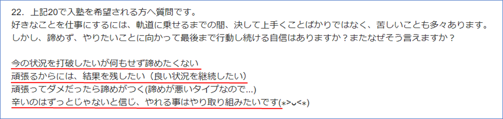 個別コンサルの事前アンケートでは、