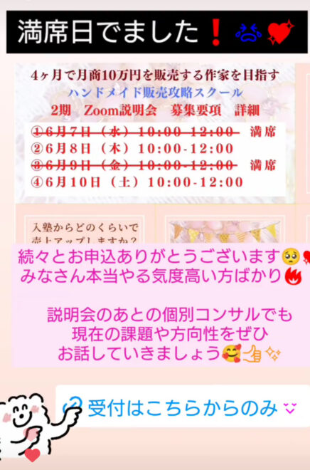 作家としての基盤を固めたのち、ハンドメイド作家向け