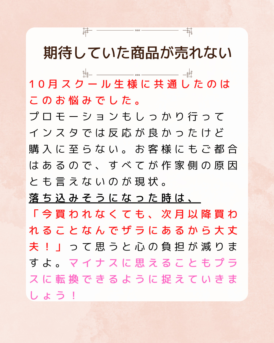 今回思うように売上が伸びなかった方も