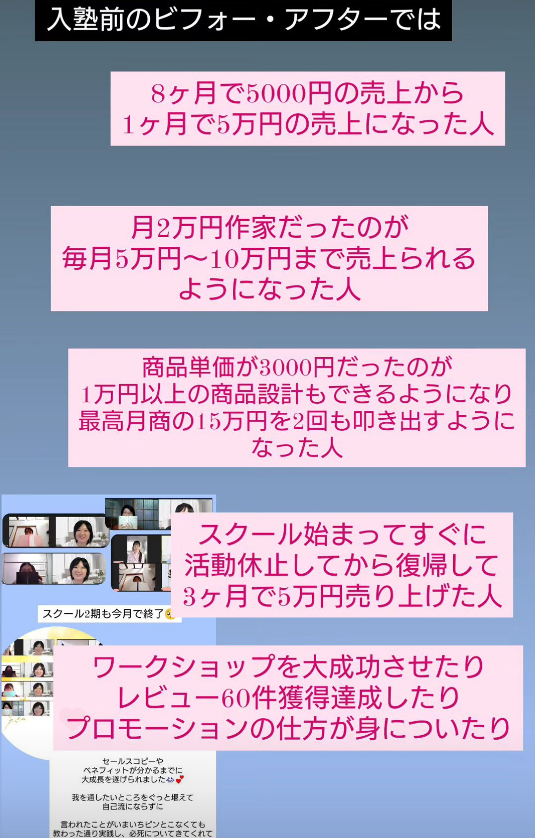 スクールに入塾すると、どんな変化があ…
